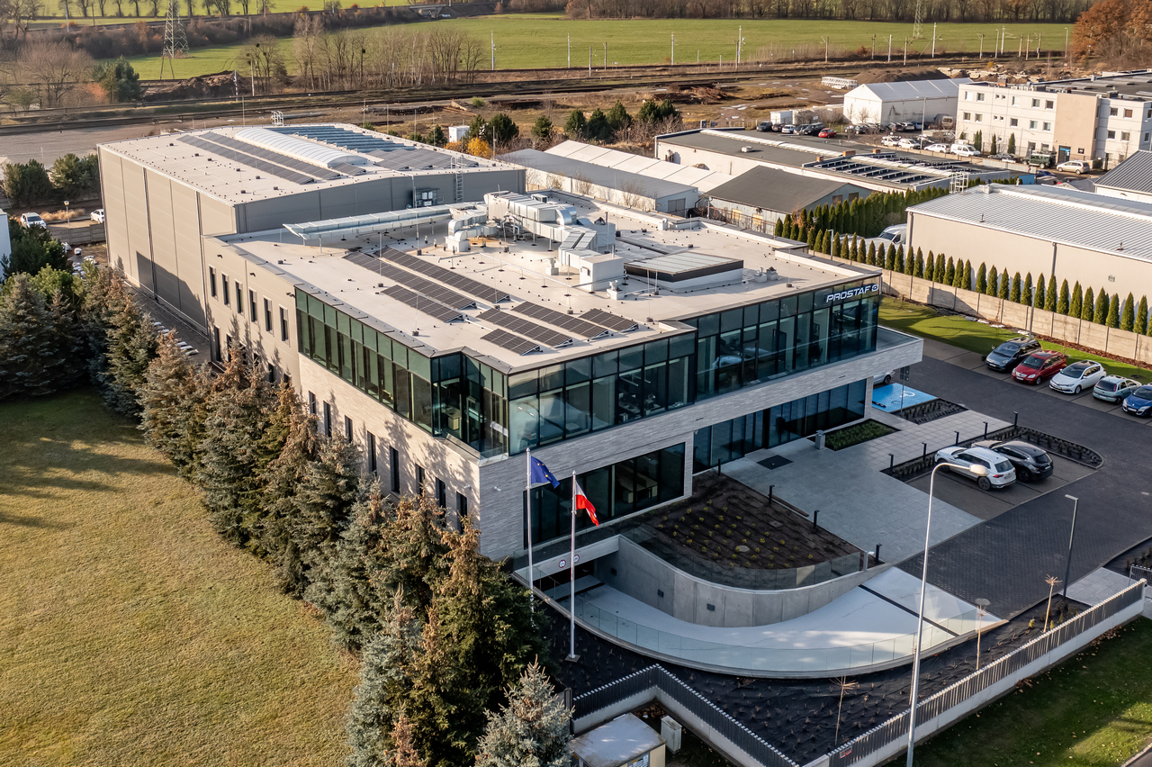 We are pleased to present one of our latest commercial projects – the modern headquarters of Prostaf. The building stands out with its striking CW50 façade system, which gives the architecture a prestigious and distinctive look.