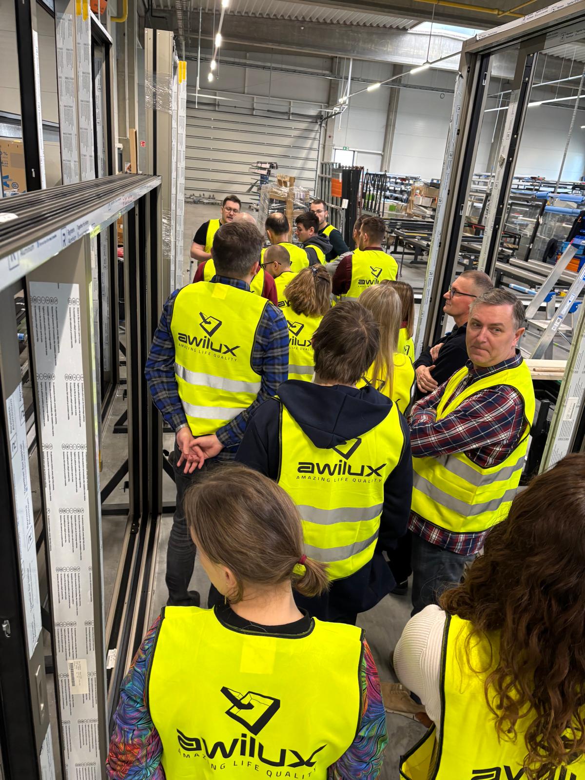 Lors de la rencontre de samedi, nos experts ont ouvert les portes de notre site de production et ont présenté aux participants : les coulisses des processus avancés de fabrication de fenêtres et de portes, le parcours complet d'une commande – de la planification jusqu'à la réalisation finale, ainsi que la réalité du management quotidien d'une production moderne – avec franchise et sans détour.