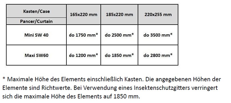 • Möglichkeit einer integrierten Insektenschutzgitter,